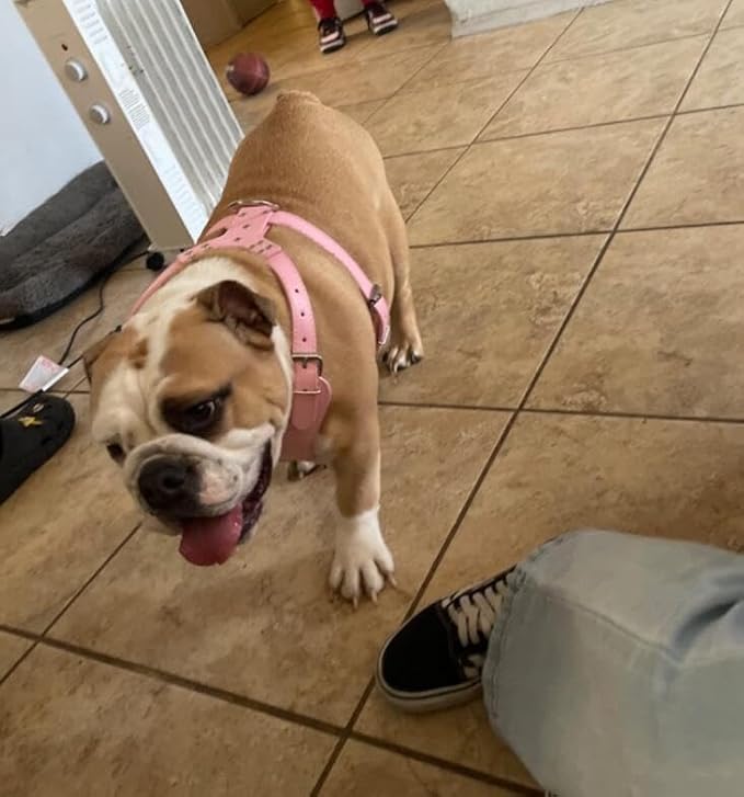 Leather Dog Harness Chest for 26"~34" Large Dogs Pitbull Mastiff Boxer Bully Black/Pink/Red/Gold Brown/Leopard/Brown (Gold Brown)