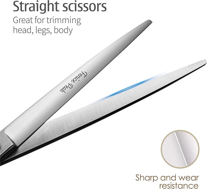 Fenice Peak 3pcs Dog Grooming Scissors Set Straight Thinning Curved Shears Stainless Steel Shears for Pet Grooming Sharp and Durable with Case Suitable for home users and Professional Groomer