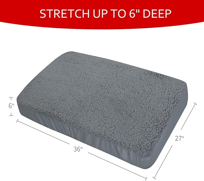 • Flexible Fit: Dog bed cover with elastic band design fits the dog bed tightly, measures 27x36 inch pet bed (fits up to 6" deep). The dog bed cover can be put on easily and removed conveniently, which fits most standard pet beds.