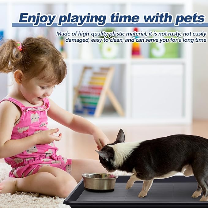 • Protective Design for Safety: our dog tray is designed with smooth edges to keep your dog safe; The raised sides control spills effectively, keeping your floors from stains and mess; The rigid plastic ensures sturdiness, offering a clean and secure environment for your pet