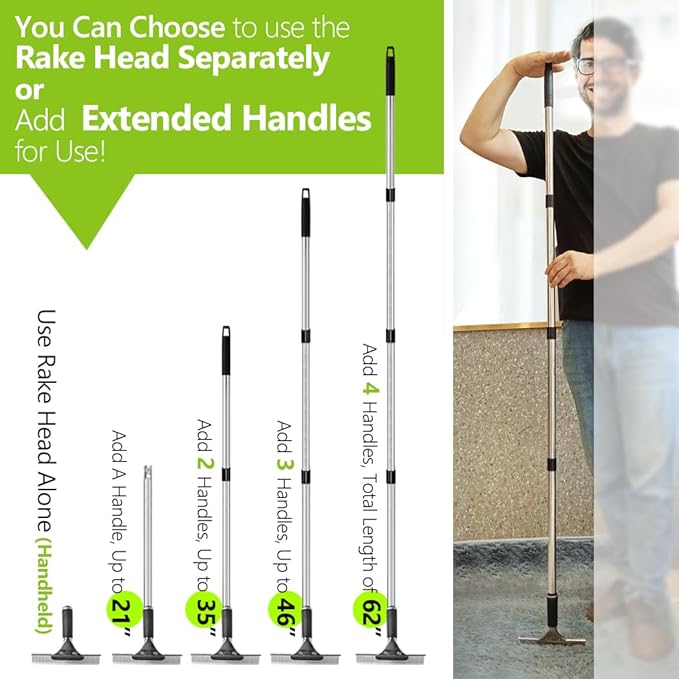 - ☘️COVER LARGE AREAS☘️This pet hair carpet rake pet hair removal broom carpet brush for pet hair for matted carpet is designed for carpet deep cleaning & grooming-including cut pile carpets or high pile rugs, the 9"wide head of this carpet rake for pet hair removal rug broom & groomer allows you to clean quickly. and the 62" long handle make our dog hair carpet rake carpet pet hair removal tool pet hair rake will easily reach under furniture, and hard to reach areas.