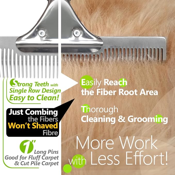 - ☘️DURABLE & EASY TO CLEAN☘️This carpet rake pet hair removal broom carpet rake for pet hair removal pet hair rake to fluff carpet rug broom carpet hair removal tool dog hair remover carpet heavy duty carpet rake made of Stainless steel for long lasting use. The single row of comb teeth is very easy to clean. Unlike other pet hair carpet rake carpet broom for pet hair broom for carpet dog hair carpet rake carpet pet hair removal tool need to be cleaned with other tools!