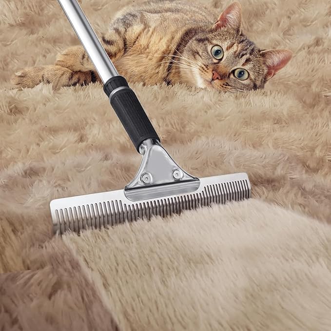 Pet Hair Carpet Rake - Multi-Surface Brush & Broom for Fluffy Rugs & Carpets - Efficient Pet Hair Removal Tool