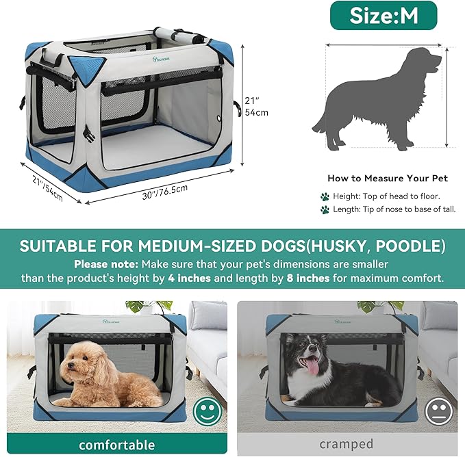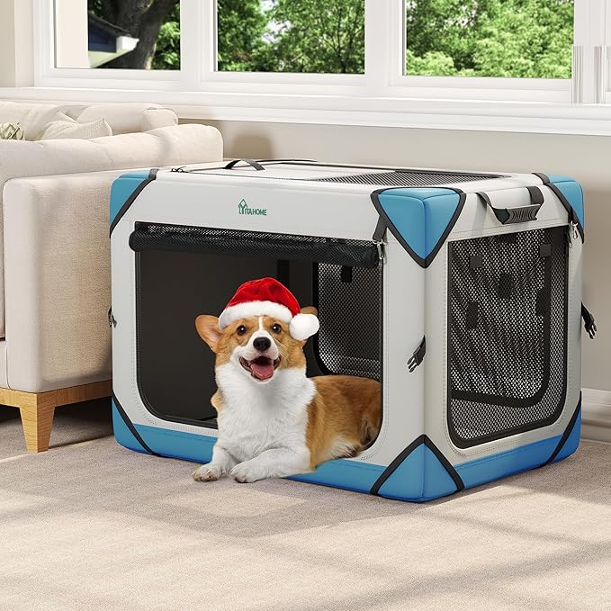 YITAHOME Collapsible Dog Crate, 4-Door Portable Travel Dog Crate with Durable Mesh Windows, Foldable Soft Dog Crate Kennel for Indoor & Outdoor(30" L x 21" W x 21" H)