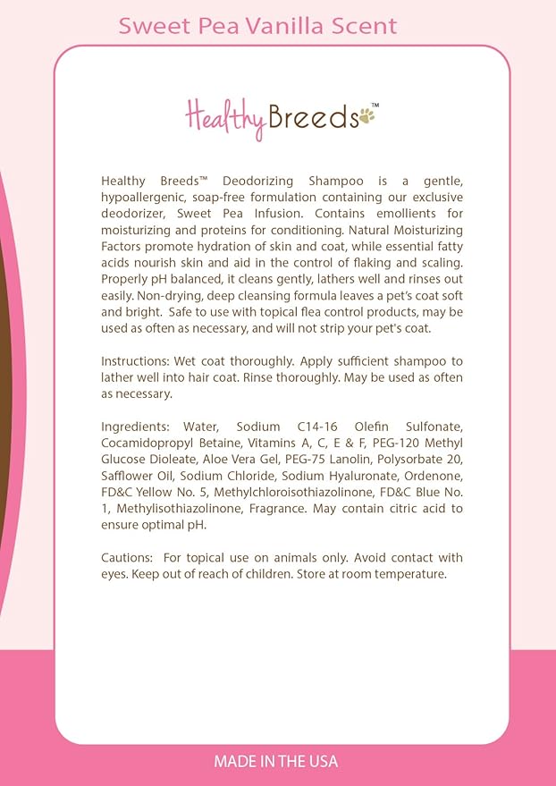 • Hypoallergenic Formula Is Safe For Use With Topical Flea Control Treatments. Healthy Breeds Deodorizing Shampoo Is Gentle And Soap-Free Leaving Your Dog’S Coat Silky And Lustrous!