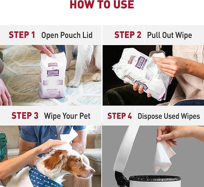 • DEODORIZING BATH WIPES: Help neutralize tough pet odors in between baths