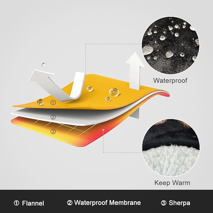 • 🔥 Warm & Cozy Comfort: Our thick dog blanket features a luxurious Sherpa lining on one side and soft flannel fleece on the other, ensuring your pets stay warm and comfortable in any weather. The waterproof inner layer effectively blocks humidity and cold, making it the perfect waterproof blanket for dogs on chilly nights!