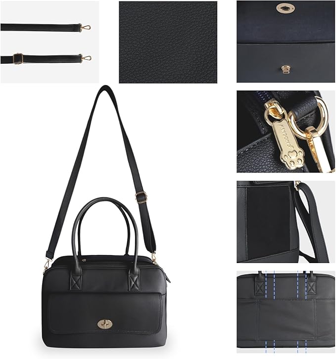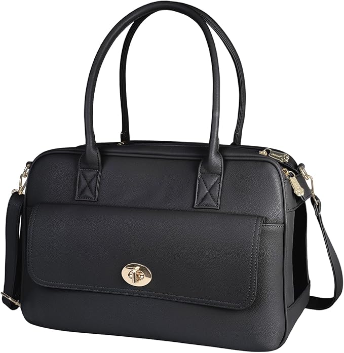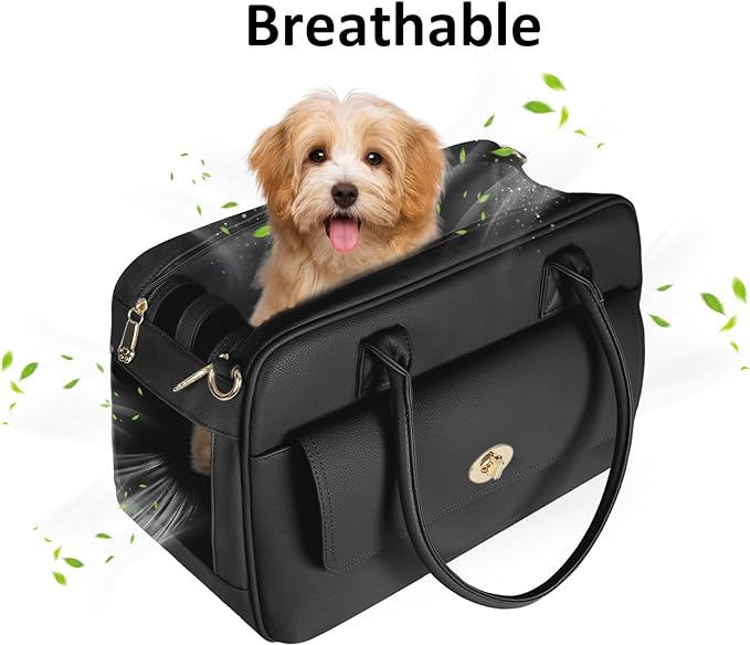 Fashion Pet Carrier Dog Purse Carrier Cat Soft-Sided Carriers for Puppy Kitten, Stylish Leather Handbag Tote Travel Pet Bag for Small Dogs Cats, TSA Airline Approved (Black)