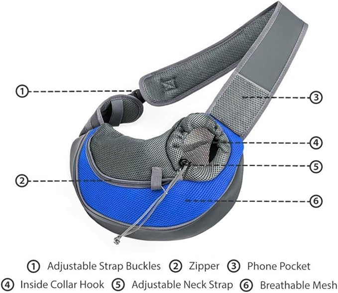 Pet Dog Sling Carrier,Cat and Dog Travel Portable Diagonal Straddle Shoulder Bag,Breathable mesh pet Sling Shoulder Bag,with Adjustable Non-Slip Shoulder Strap Below 10lb for Small Dogs Cats (Blue)