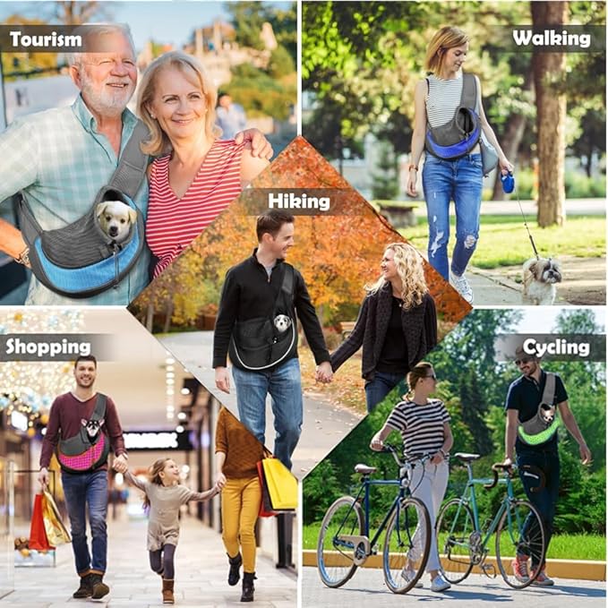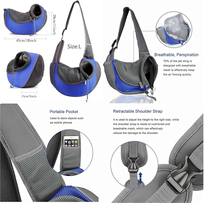 • Comfort&Breathable:Dog carrier sling made from High-quality oxford, breathable mesh fabric, comfortable sponge shoulder strap, the thickened bottom can prevent pets from scratching, and bring a more comfortable travel experience for pets