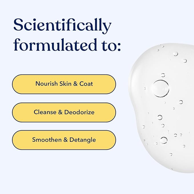 • Product Benefits : Cleans, Conditions, Deodorizes, Moisturizes, Detangles, Gently lathers, Quickly rinses clean, Leaves coat shiny & fluffy, Free of parabens, sulfates, phosphate, DEA, MEA Cleans, Conditions, Deodorizes, Moisturizes, Detangles, Gently lathers, Quickly rinses clean, Leaves coat shiny & fluffy, Free of parabens, sulf… See more