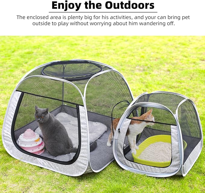 Tenrai Portable Cat Playpen, Trapezoidal Design for Better Standing, Foldable Pet Tent for Outdoor and Indoor Use of Puppy and Kitten, Dog Play Enclosure, Cat Condos & Houses