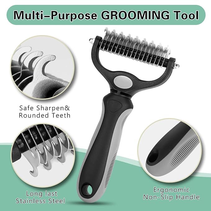 • PERFECT DESHEDDING & DEMATTING GROOMING TOOL: This deshedding brush is perfect for cats and dogs with thick, long fur. it's the great tool for deshedding double-coated breeds - Easily removes loose undercoat. Also, great for removing mats & tangles - Keep your pet healthy and mat-free.