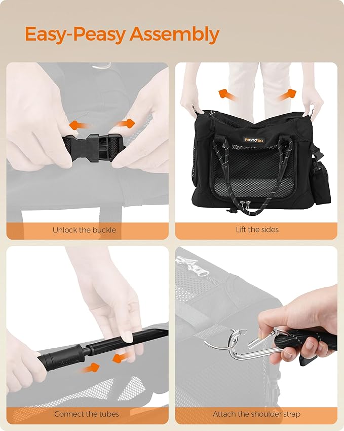• [Safe, Comfy, Practical] Made with a steel frame, waterproof Oxford fabric, breathable mesh, and a fleece mat, this dog carrier offers a stable, safe, and comfortable haven for your pet on the way. Even better, the mat is removable for easy cleaning