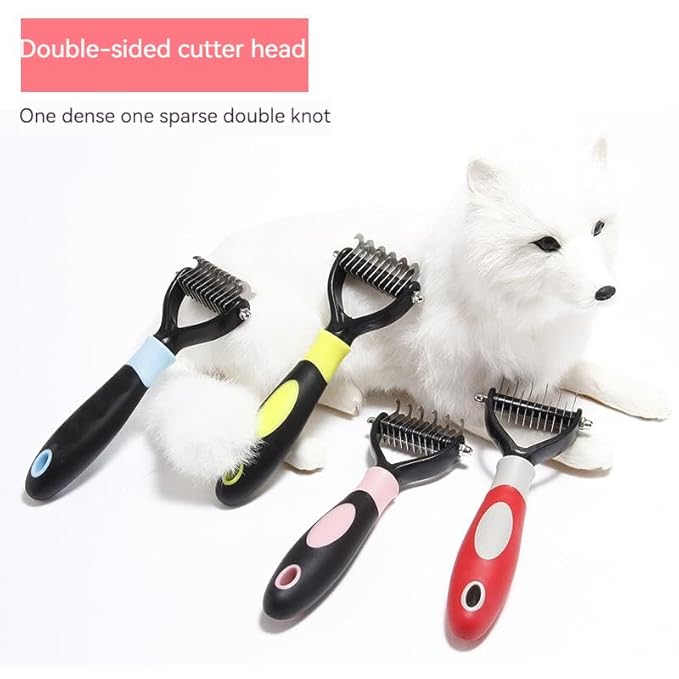 • Clear all different mats and tangles. The double sided pet comb has a different number of teeth on each side. The lower density side is a dematting rake for stubborn matts and tangles. The higher density side is a detangler, deshedding tool, or undercoat rake for faster results thinning and to control shedding.