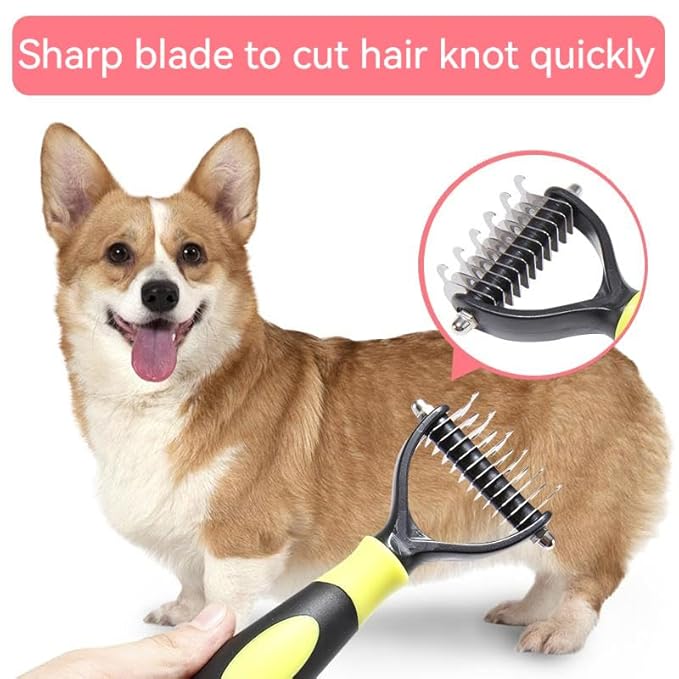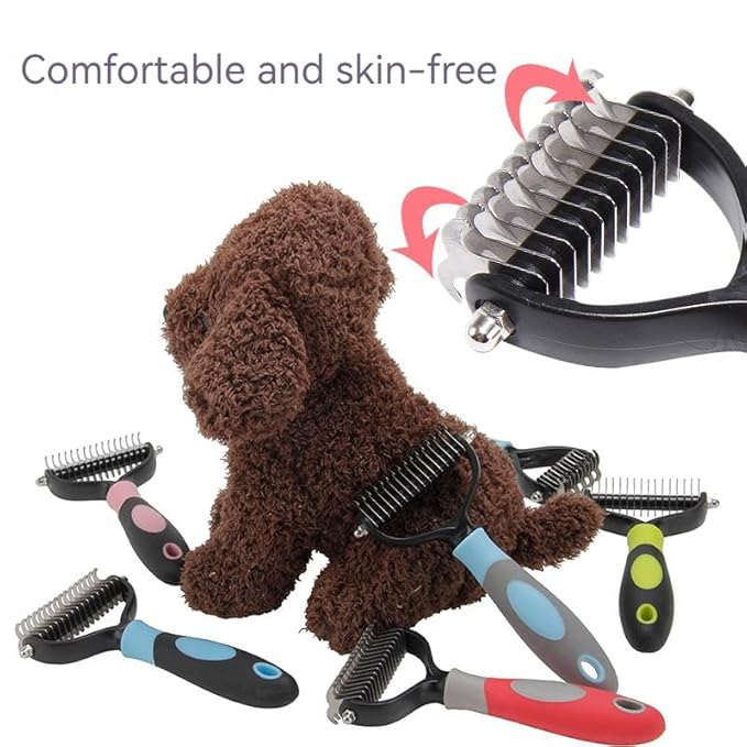 • Multiple uses with a single comb. The pet grooming tool not only works great as a dematting brush or detangling comb, but also as an undercoat comb or deshedding rake. The dematting tool for dogs and cats can comb to cut a matt or tangle then be used as a deshedding brush or deshedding comb