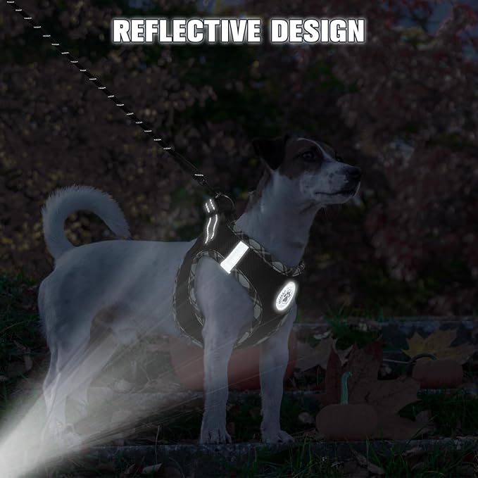 • Reflective Dog Harness: With premium reflective bands on the sides, this adjustable dog harness can be seen even in low visibility conditions or dark night, making it easier to control dogs and ensuring the safety of walking at night. Plus, 5ft long leash with reflective stripes also gives your dog&cat enough space to walk in front of you, better control.