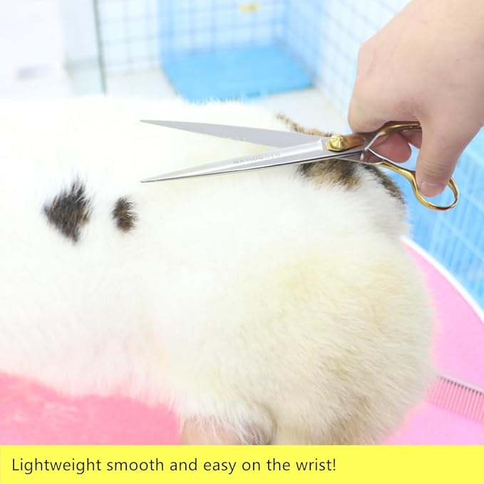 • 【Straight Blade】-- The straight scissors has a professional convex edge and is your best choice for overall trimming of your dog or cat’s coat. It can be used to cut long hair and furs on body. Making them an excellent choice for professional groomers or as essential shears for home grooming.