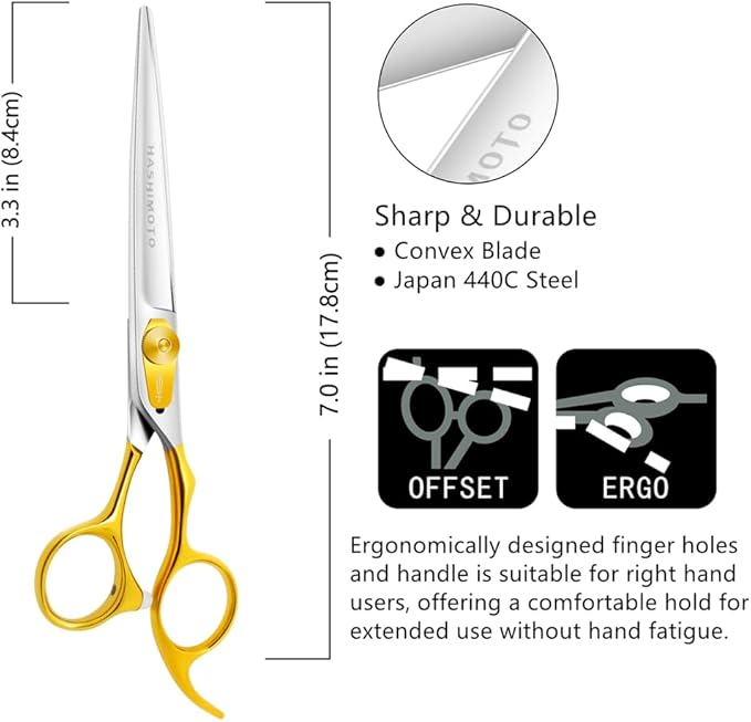 HASHIMOTO Straight Dog Grooming Scissors, 7.0 inch, Light Weight, Balanced, Ergonomically Designed for Professional Pet Groomers or Home Grooming