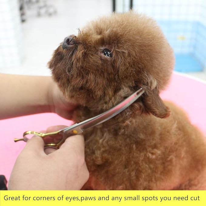 • 【Perfect for Detailing】-- With a 30-degree curved blade, these scissors are perfect for detailing around delicate areas like the eyes, face, legs, and paws, ensuring a precise and professional cut every time.The curve helps to get the harder to reach places that would be awkward with regular scissors.