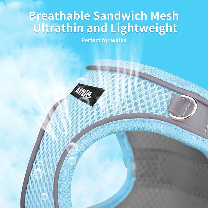 AIITLE Dog Harness, Spring No-Pull Cat Harness with a Leash, Adjustable Reflective Dog Vest, Cat Harness Escape Proof, Outdoor Walking, Camping for Extra Small Dogs and House Cats Pure Blue XXXS
