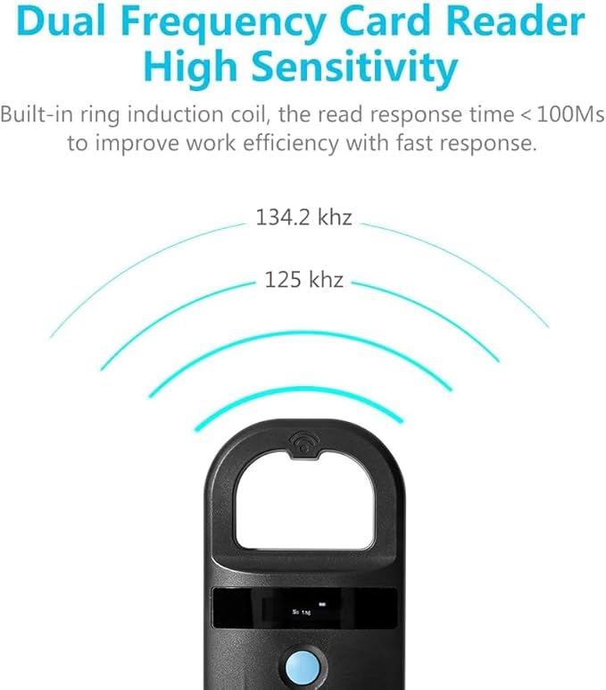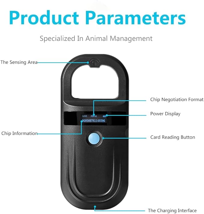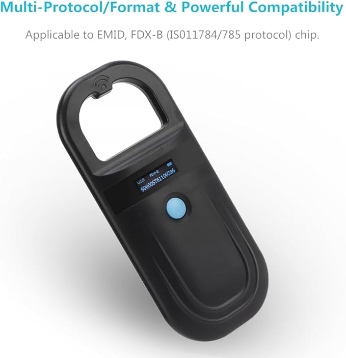 • Pet Chip Canner: This is a low-frequency label scanner that uses wireless recognition technology, and the card reader cannot read the Avid chip. Unable to recognize a 9-digit ID. Only international standard protocols with 15 digits can be recognized. The dog microchip adopts wireless recognition technology and supports reading FDX-B (ISO11784/11785) and EMI microchips(Cannot read the Avid chip)