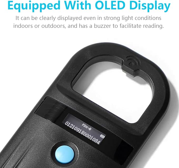 • Backlit Screen:Dog microchip scanner OLED display screen for easy reading and clear visibility even under strong light