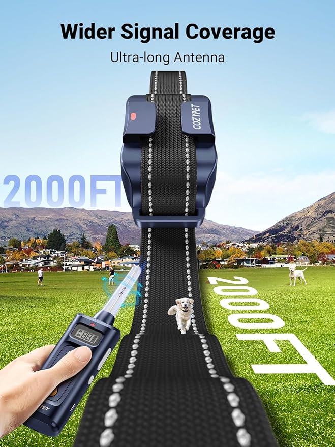 • ADJUSTABLE COLLAR & 2000 FEET LONG REMOTE RANGE: The adjustable collar length ranges from 7 to 23 inches, suitable for dogs of various sizes, ensuring comfort and weighing only 0.2 pounds, so it won't burden your dog. The remote range extends up to 2000 feet, allowing you to easily train your dog whether in the backyard, park, or beach. Everything is within your control.