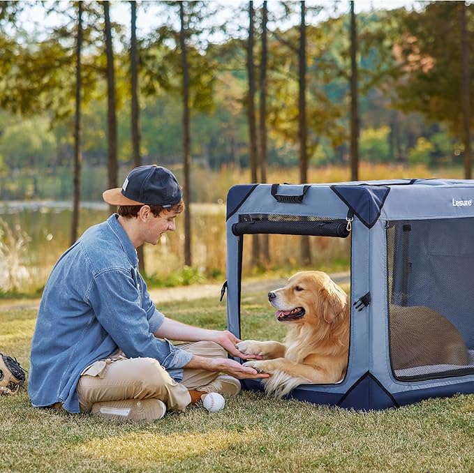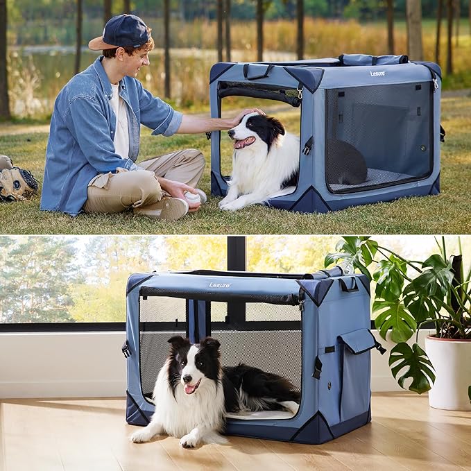 Lesure Collapsible Dog Crate - Portable Travel Kennel for Extra Large Dog, 4-Door Pet Crate with Durable Mesh Windows, Indoor & Outdoor, Blue