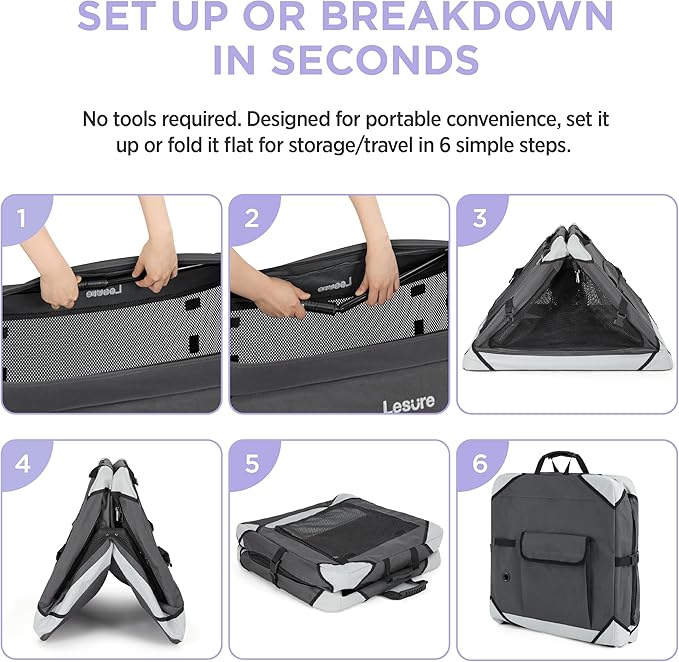 • Foldable and Space-Saving Design: This soft dog crates for large dogs provides a safe, comfortable dwelling for your pet and can be folded down in seconds to save space when traveling or when not in use. This soft-sided dog crate is quick and easy to set up with no tools required.