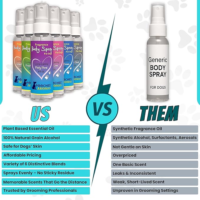 • 🐶𝐋𝐎𝐍𝐆-𝐋𝐀𝐒𝐓𝐈𝐍𝐆, 𝐒𝐖𝐄𝐄𝐓 𝐒𝐂𝐄𝐍𝐓: Give your pet a fresh, Pooches Aromas Natural Dog Cologne that lasts for weeks! This dog cologne spray effectively controls odors between baths, keeping your furry friend smelling clean and pleasant—never overwhelming to sensitive noses, including your pet’s.