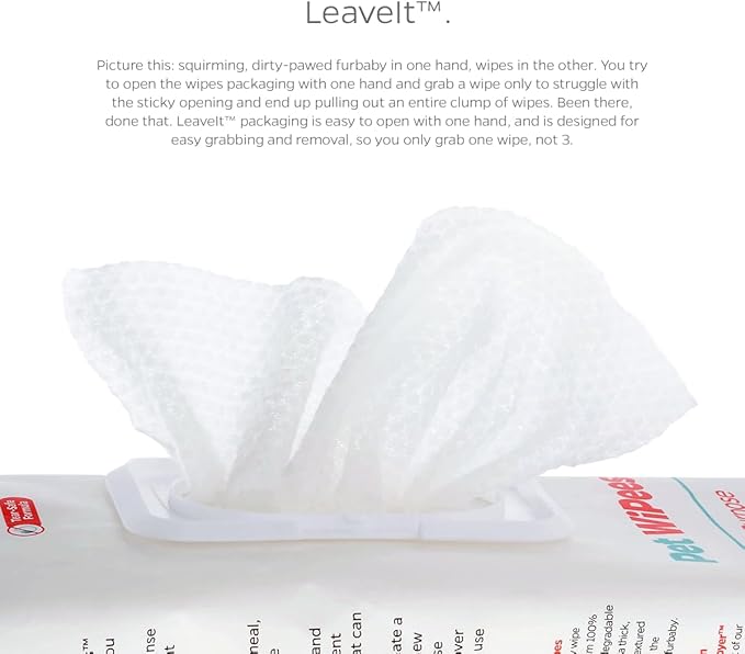- INTENTIONAL PACKAGING: With a wiggly furbaby in one hand, the last thing you need is hard to open dog wet wipes that clump when you pull them out. Pet WiPees innovative LeaveIt packaging prevents clumping, so you only pull one, not three dog paw wipes. These pet grooming wipes feature a resealable lid, preventing the large dog wipes from drying out, and making for easy one-handed use. For when your furbaby didn't have 'getting a bath' on their agenda, Pet WiPees help make it easy.