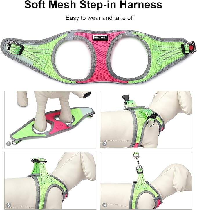 Mercano Soft Mesh Dog Harness and Leash Set, No-Chock Step-in Reflective Breathable Lightweight Easy Walk Escape Proof Vest Harnesses with Safety Buckle for Small Medium Dogs, Cats (S, Hot Pink)