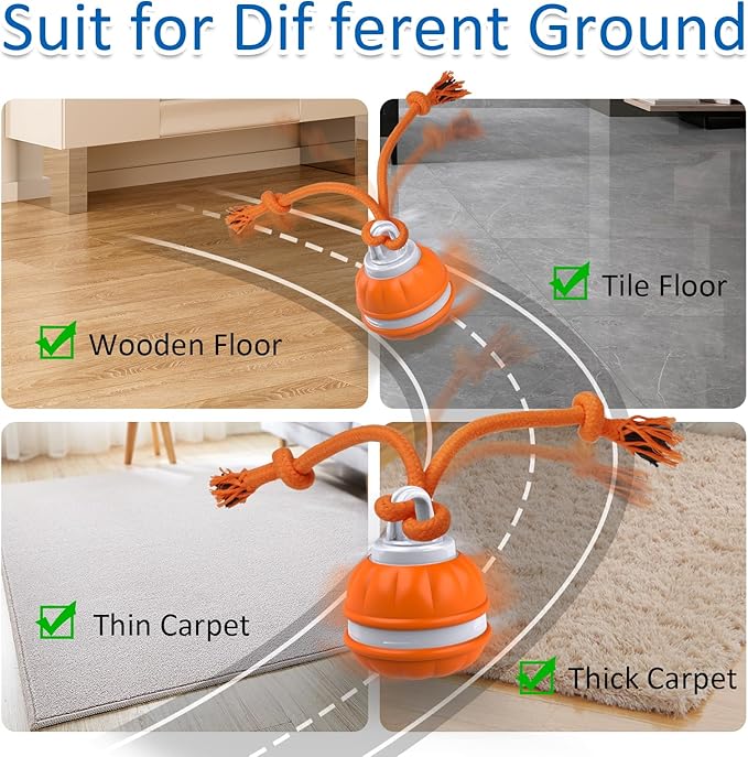 • Using Scenarios: dog smart ball can roll on any type of floor such as marble, wood, tils floor, thin carpet, thick carpet etc