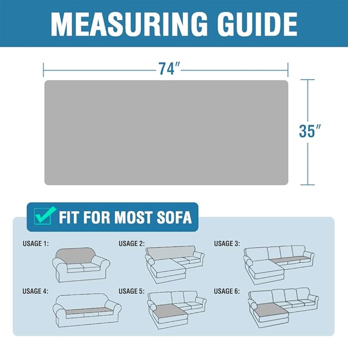 • GREAT FIT: Sold per PIECE. Size measures: 35" x 74". Suitable for almost american style furniture, especially for sofa and bed. In addition, it can also be used in places such as cars, window seats, children's playing floors, and dog cages that require it. Feature one-size-fits-most, kindly measure before ordering. More recommended for cloth sofas, there is greater friction that keeps it in place