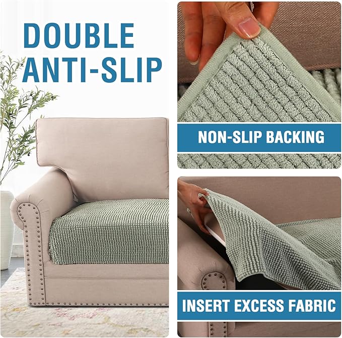 H.VERSAILTEX Plush Chenille Dog Bed Cover Thick Soft Sofa Cover for 3 Cushion Couch Anti Slip Couch Cover Furniture Protector for Dog, Pet, Cat (35" x 74", Sage)