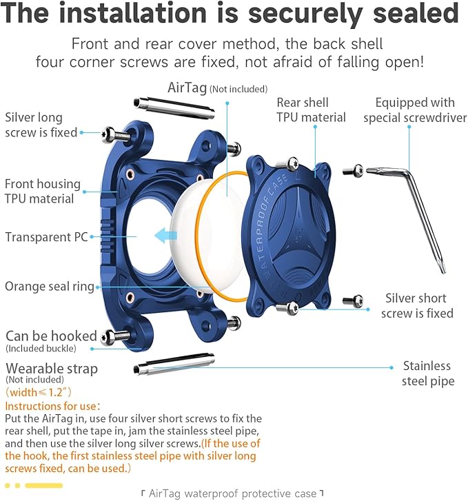 • 【Comfortable & Durable Dog Airtag Holder】 Airtag holder for dog collar With 4 special screws to close, Silicone sealing ring in the middle, the air tags will never fall off from the holder. This air tag dog collar holder is firm and sealed, with anti-theft.