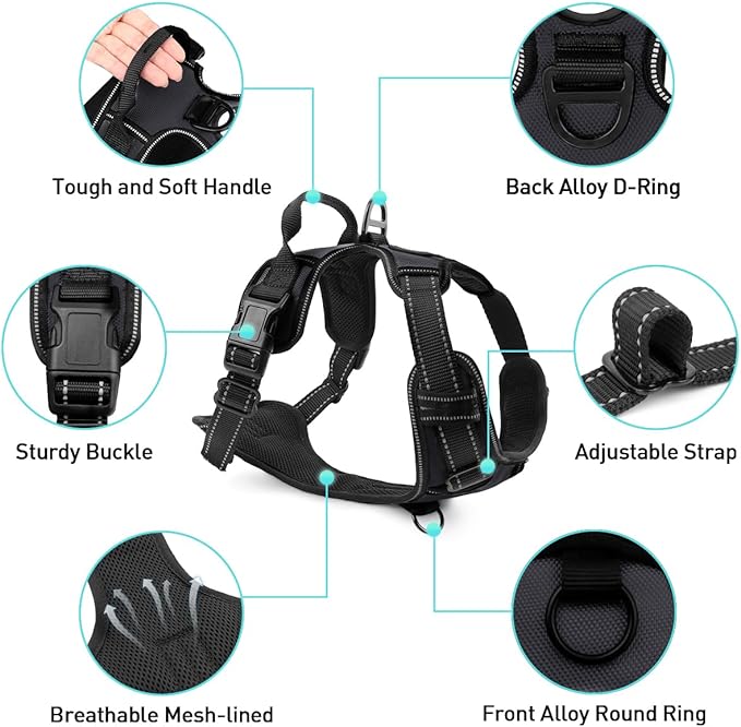 • Safety Details: The 360° highly reflective strips around the pet harness provides good visibility in the dark. Strengthen and widened handle allows you with maximum space to control your dog while walking through a crowd or walking past another dog