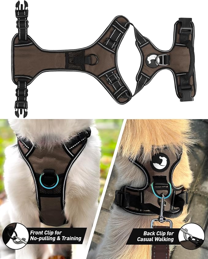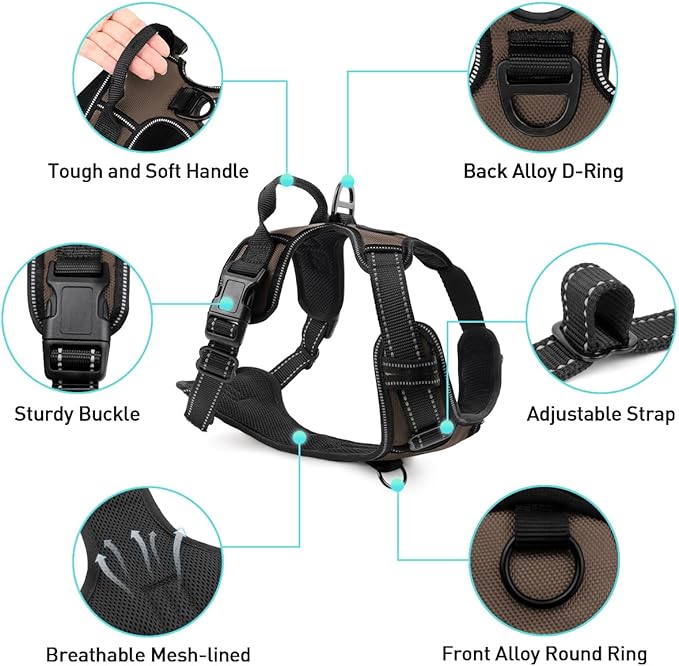 Joytale No Pull Dog Harness for Small Dogs, Reflective Pet Vest with Front Clip, Adjustable Soft Padded Harnesses with Easy Control Handle for Training and Walking, Brown, S
