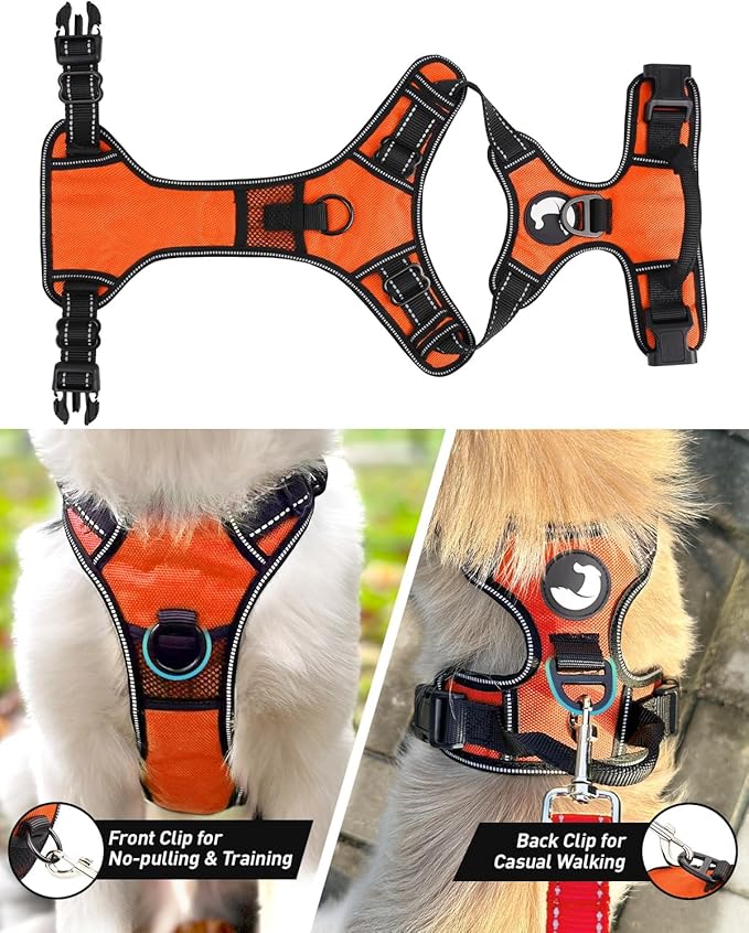 Joytale No Pull Dog Harness Medium Sized Dog, Reflective Pet Vest with Front Clip, Adjustable Soft Padded Harnesses with Easy Control Handle for Training and Walking, Orange, M