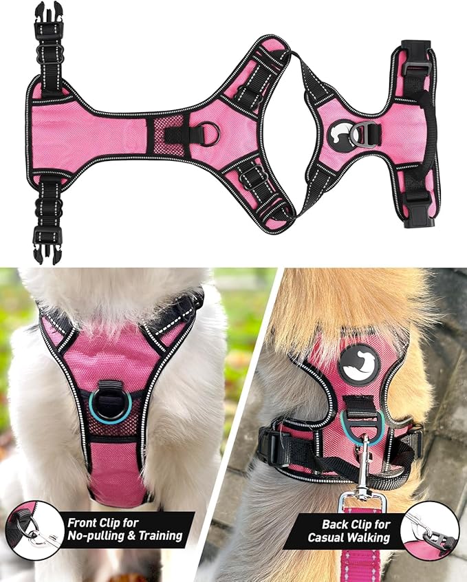 • No Pull & No Choke: Joytale no pull dog harness featured with 2 metal hook rings for better control. The front clip allows you to redirect your dog's attention and reduce pulling, while the back clip provides traditional leash attachment