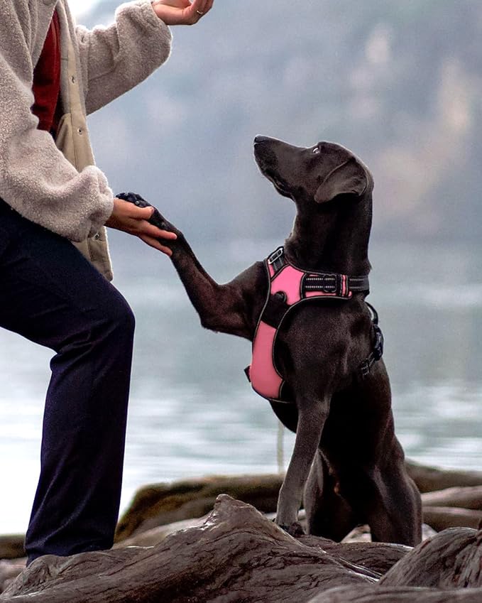Joytale No Pull Dog Harness for Extra Large Dogs, Reflective Pet Vest with Front Clip, Adjustable Soft Padded Harnesses with Easy Control Handle for Training and Walking, Pink, XL