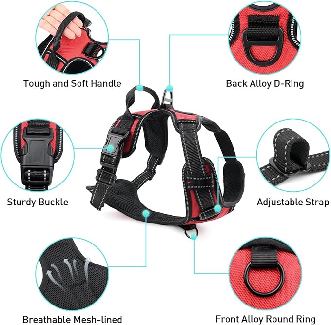 • Easy To Use & Adjust: Great for growing and mixed breeds. Easy on and off the dog harness in seconds with 2 quick-release buckles. 4 adjustment points (2 Shoulder & 2 Chest) allow a custom fit with maximum adjustability without choking and slipping out