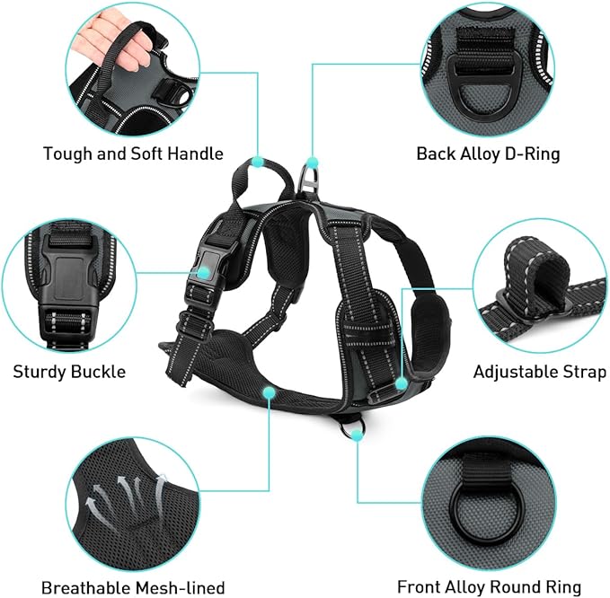 • Safety Details: The 360° highly reflective strips around the pet harness provides good visibility in the dark. Strengthen and widened handle allows you with maximum space to control your dog while walking through a crowd or walking past another dog