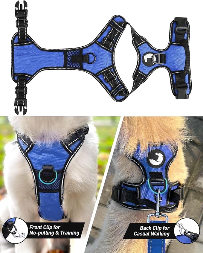 • Easy To Use & Adjust: Great for growing and mixed breeds. Easy on and off the dog harness in seconds with 2 quick-release buckles. 4 adjustment points (2 Shoulder & 2 Chest) allow a custom fit with maximum adjustability without choking and slipping out
