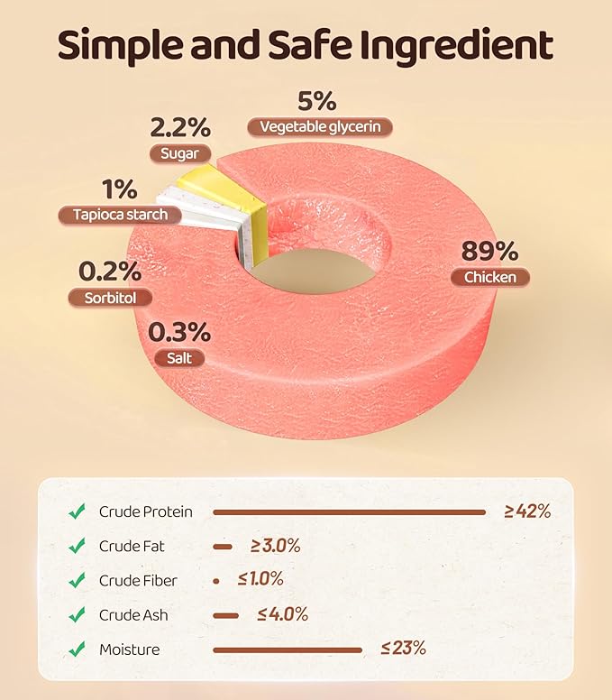• 【Perfect training Snacks】Ideal for training sessions! Our Chicken Slices are small pieces, making them more suitable as training snacks than jerky, ensuring quick rewards and positive reinforcement. Whether you're rewarding good behavior or simply showing them some love, our Chicken Slices are sure to please