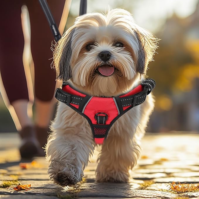 No Pull Dog Harness Medium Reflective Front Clip Vest with Pocket, Adjustable 2 Metal Rings 2 Buckles Easy to Wear & Take Off (Red)