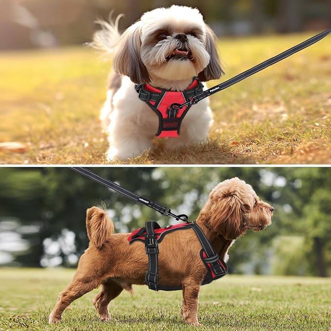 • [ Adjustable and Reflective ] The easy-on harness has 4 adjustable points, which create a secure fit. And slip-resistant straps mean the buckles will stay put after adjusting. The reflective strips on the harness making your dog more visible and the two of you safer during walks at night. The breathable material also won't trap heat, making it a great choice for both winter and summer walking, running, hiking. Plus Velcro on the back for attaching whatever you want.