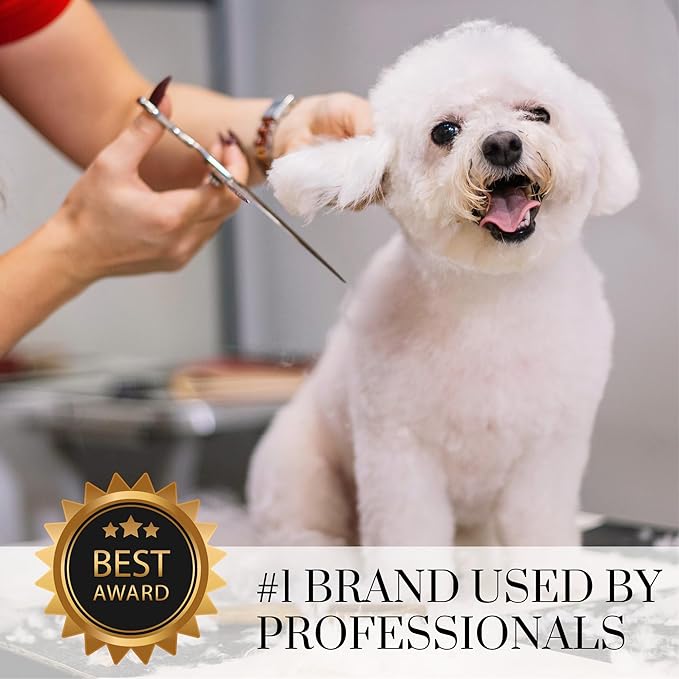 • Curved Blade Mastery: The 7.5-inch curved blades are ideal for shaping, styling, and adding rounded edges to the coats of all dog breeds, from the delicate curves around the face and paws to the flowing contours of the body.