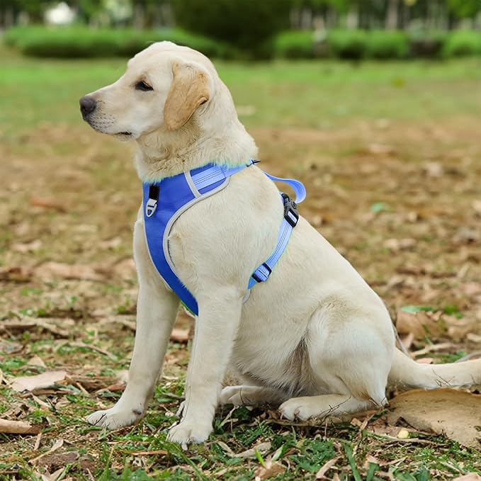 Dog Harness for Medium Dogs No Pull, Adjustable Reflective Oxford Outdoor Vest, Easy for Walk and Training, Front/Back Leash Clips for Small, Medium, Large Dogs (Blue, S)